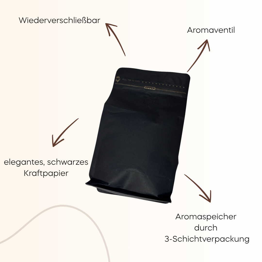 In der Verpackung können unsere Kaffeebohnen nach dem Rösten das perfekte Aroma richtig entfalten.
